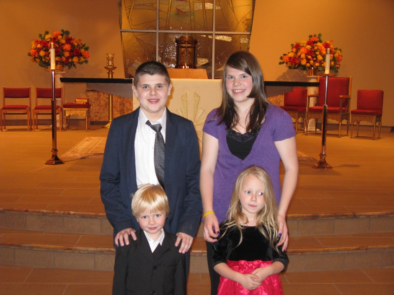 It took weeks to find a dress and shoes for Patty’s Confirmation. It was very trying, as Patty had very high standards for what she would accept. Her Aunt Becky, and her sponsor, was a life saver in this respect as she took her out and found her the dress and the shoes for the Confirmation. She looked very pretty in her dress and shoes with heels. Patty took the confirmation name “Felicity” after Saint Felicity who is the patron saint of Mother’s. She took that name, because it is the same as her Grandmother’s.