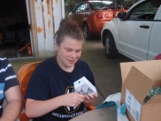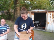 The cookout included chicken that had been marinating overnight. Plain chicken seemed awful boring and mesquite seemed to be a flavor that everyone would enjoy. With Kristy’s help bacon was added to the cheddar cheeseburgers, after cooking bacon on the grill did not turn out so well and it had to be completed inside. Everyone really enjoyed the food.