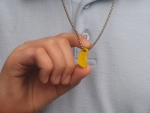 Eddy has yet another foot added to his foot necklace. This time the foot is blue, as you can no doubt tell by the picture, and I asked him why the first one was yellow and now he has a blue one. I knew it was not the school colors he was choosing from, and he said that he arbitrarily picked the first foot and the second and that there are many different colors to choose from.