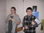They both ended up being woods people. They both had to wear make up. Patty was personally in charge of bringing their make up to the play so that they could both apply it before the show. The show ran for three nights and this was the Friday show. Their mother attended the Saturday night performance and their Great Grandmother went to the final showing on Sunday. Their part was basically walking up and down the isle to the stage and then back off set again with several other children. I took the picture of them during the intermission. They had a lot of fun doing it and I hope to see more plays with them in it.
