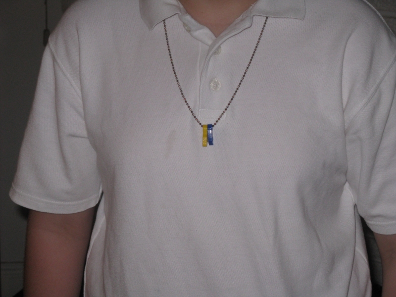 Eddy has yet another foot added to his foot necklace. This time the foot is blue, as you can no doubt tell by the picture, and I asked him why the first one was yellow and now he has a blue one. I knew it was not the school colors he was choosing from, and he said that he arbitrarily picked the first foot and the second and that there are many different colors to choose from.