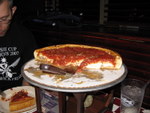 This pizza is probably some of the best stuff I have ever eaten. It is just so good. We got this with sausage and pepperoni. As you can see there is an ungodly amount of cheese in there and it is topped with marinara sauce. You can not pick this thing up and eat it like normal pizza you have to eat it with a fork and a knife.
