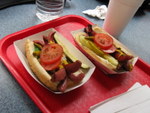 For better or for worse we ended up having two of the dogs and they were fantastic. As you can see they come with some sort of hot peppers, tomato, mustard, onion, on a poppy seed bun. The whole package is complete with the addition of a beef hotdog that they cut in this peculiar way. I did not bother asking if there was an actual reason for that cut or if it was strictly for the sake of presentation.