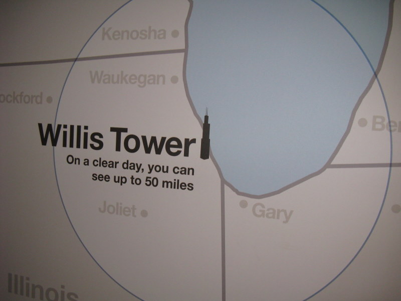 I always pictured that when you got to go to the top of the Sears Tower you were literally going to be on the top. I was slightly disappointed to find out this is not the case. You are actually on the 103rd floor, which is fully enclosed and there is a ceiling and everything. I do not know if people used to be allowed, or possible they still have some sort of tour that goes higher than where we were, but that is where we ended up. The whole “throwing pennies off the building thing” seems right now to be more of an urban legend or something from American history.