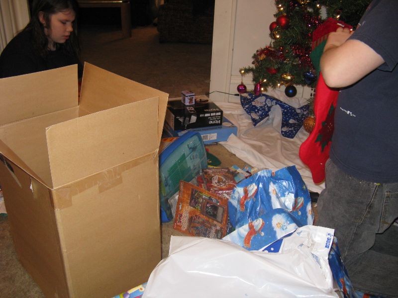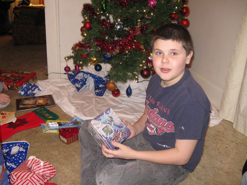 Eddy kept saying that he got “mostly” everything he wanted. He is upstairs currently sorting through probably over 100 of those Yu-Gi-Oh cards that he wanted. He has no idea what the package is, but I did tell him that there was one more Christmas gift that he would be getting this year. He does not think it is the one very special thing that he wants though, because I already told him that they do not sell that toy in the United States.