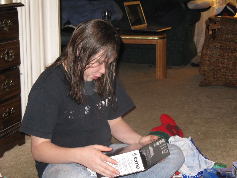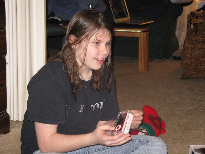 Patty did on the other hand get everything that she wanted. It is very difficult to make the “final” gift a surprise when she gets an itunes gift card and an iHome player for an iPod nano, but some how she did still manage to look surprise when she unwrapped the pink iPod nano. I have already instructed her on exactly what I expect, which is that she will not be taking that thing out of the house and especially not to school. If she loses it or it gets broken it will not be replaced.