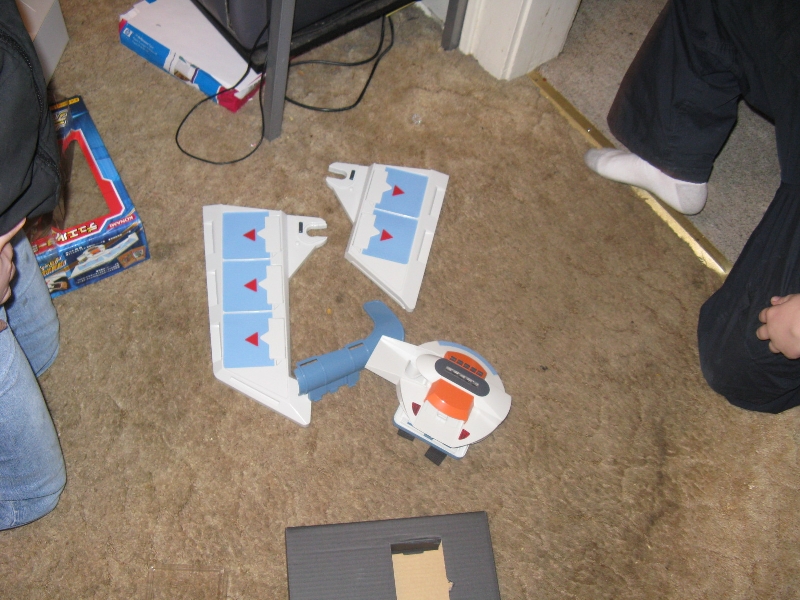 We brought it home and we assembled it without any problems. The only thing I actually had to do to help really was get the batteries, because they were not included. He was wearing it. He is still wearing it. He has been wearing it every day. I don’t mind as long as he doesn’t take it outside and break it or lose it. I have warned him that people will try and steal it. That seems to be a theme for Akron and I want him to be aware of it. This was a good Christmas.