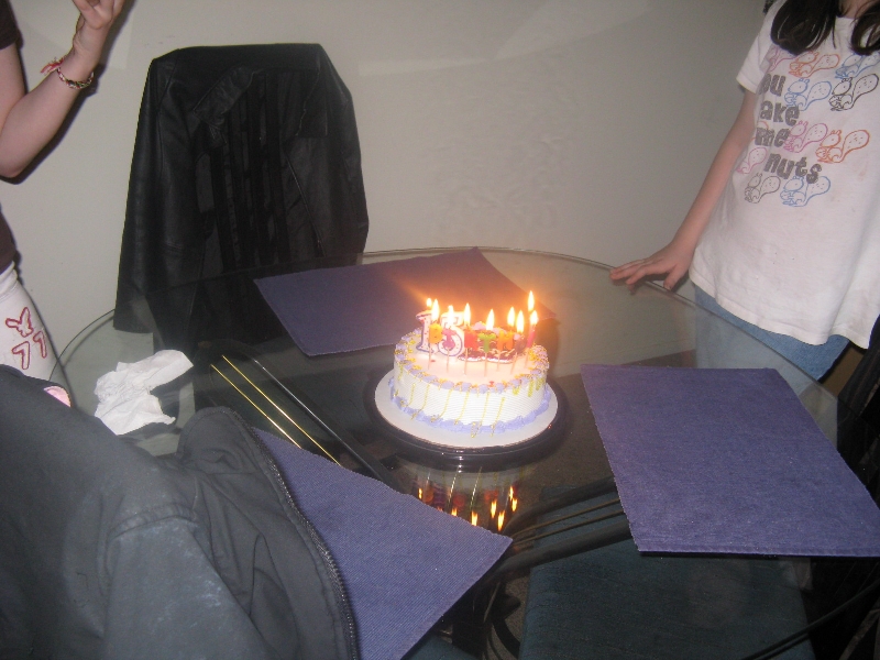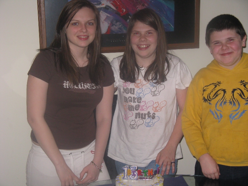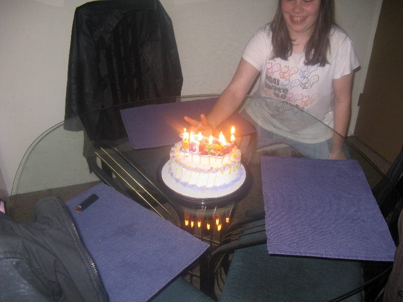 Michelle turned 15, and while I was not able to do anything for her on her actual birthday that did not stop us from having a little mini-party on Friday when I went to drop off the kids for the weekend. I brought some dinner and Kristy got the cake, so the only thing we needed was to drive out there and sign a song, light some candles, and eat!