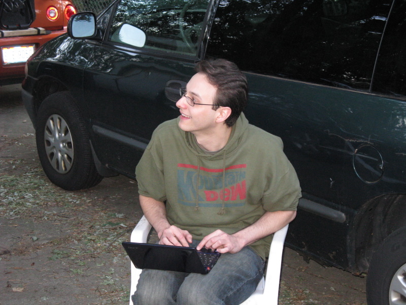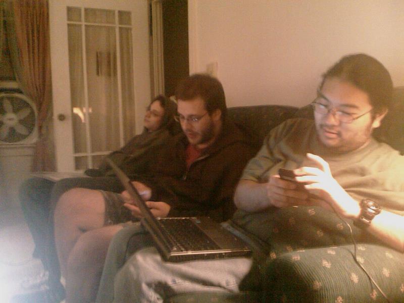There was a lot of trading and the purchasing of objects. Jo bought an external CD-ROM thing from Rick, I got mobile AIM from Jo, and Andrew finally got his assorted bag of computer parts that he left at a LAN about a month ago back.
